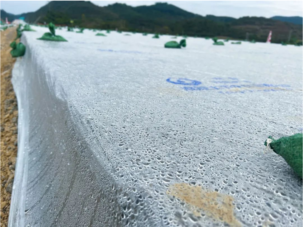 一張薄如蟬翼的“塑料膜”竟可以鎖住自重200倍的水分?走進水口-崇左-愛店高速公路(崇左至愛店口岸段,以下簡稱崇愛高速)K2、K8路面試驗段,3.4公里的水泥穩定碎石都敷上了一層“面膜”。
